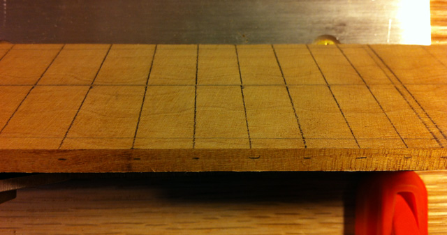 Before cutting slots for the frets I marked the depth of just under 3mm on the side by each cut I planned to make.
